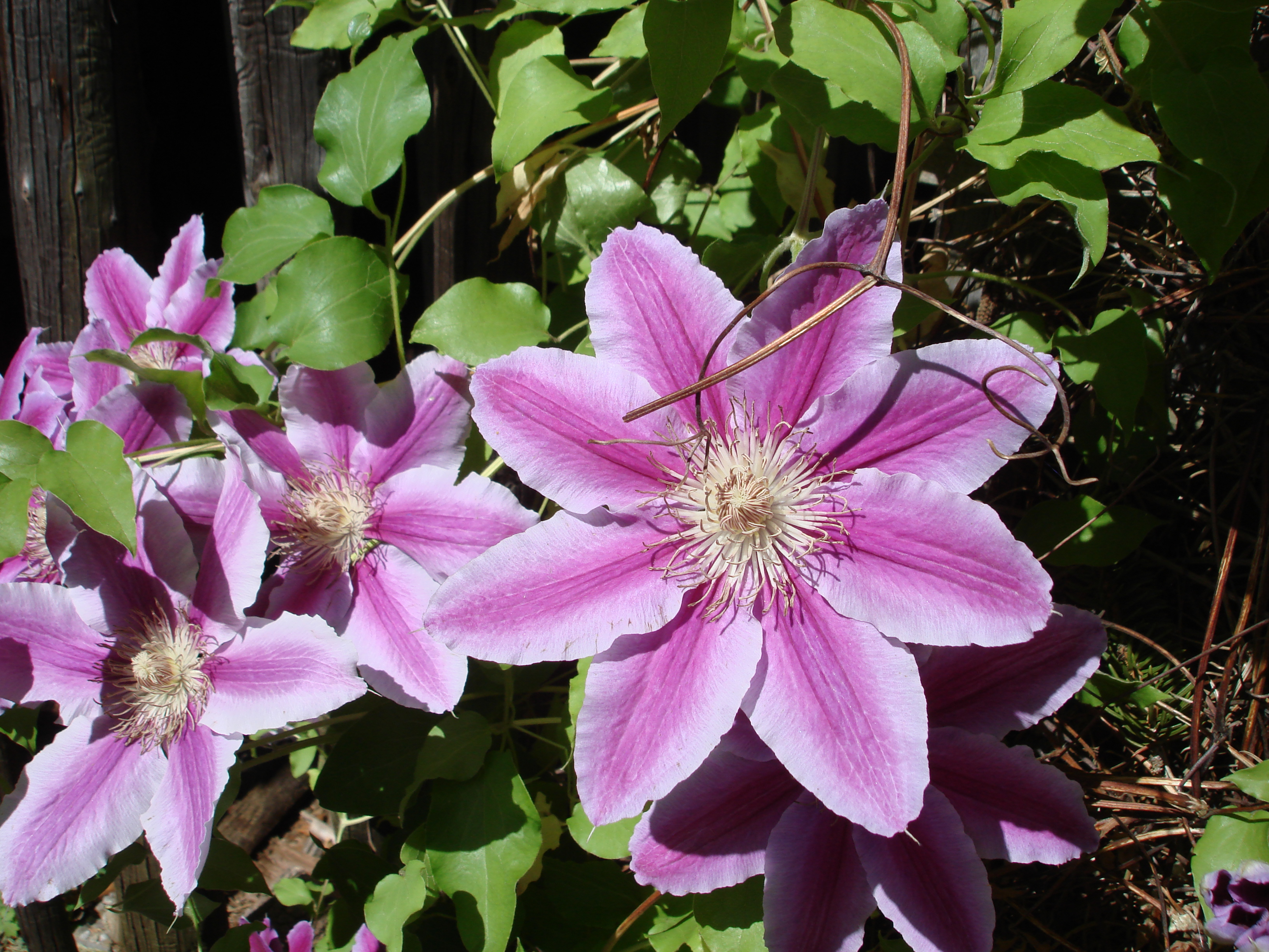 Liană volubilă, de talie mică-mijlocie. Frunze trifoliate. Flori mari, mov, apar în mai-iu.....