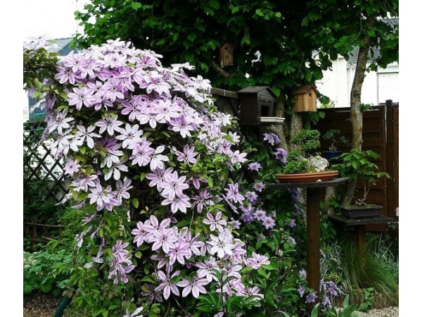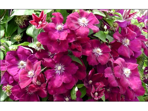 Specia Clematis x jackmannii are numeroase cultivaruri cu flori de culoare albă, diferite nuanţe de roz, roşu, violet, flori bicolore, flori involte şi cultivaruri de talie mică, pentru grădini mici şi jardiniere.