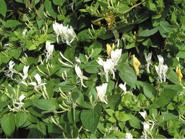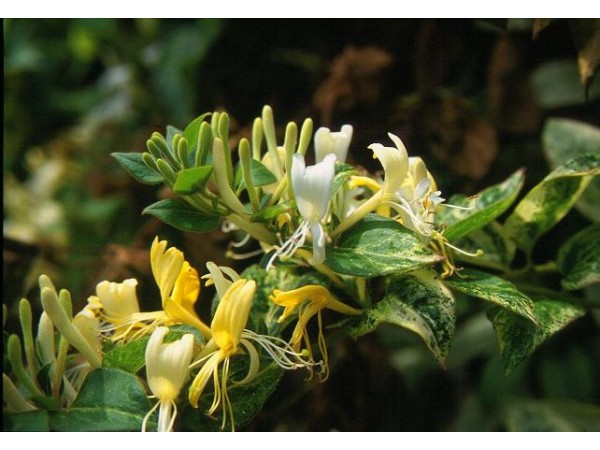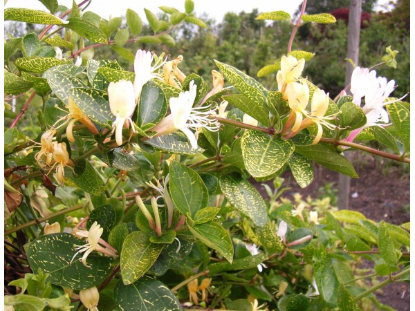Liană volubilă, viguroasă. Frunze ovale, semipersistente. Flori albe, care după polenizare se colorează în galben, parfumate, apar în mai.